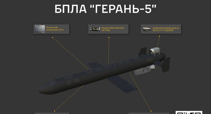 Головне управління розвідки (ГУР) Міністерства оборони України оприлюднило детальний розбір нового російського ударного безпілотника "Герань-5". Процеповідомляють Dengi.ua.