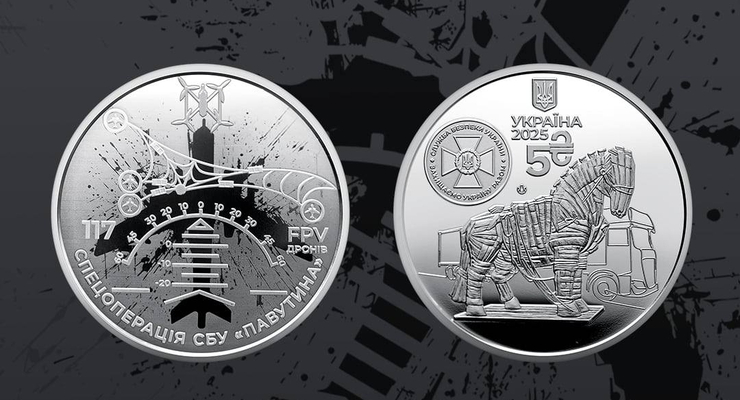 Зазначається, що нова монета присвячена діяльності Служби безпеки України та її унікальній спецоперації "Павутина", що вже ввійшла в історію як свідчення технічної винахідливості, інтелекту та професіоналізму українських захисників.