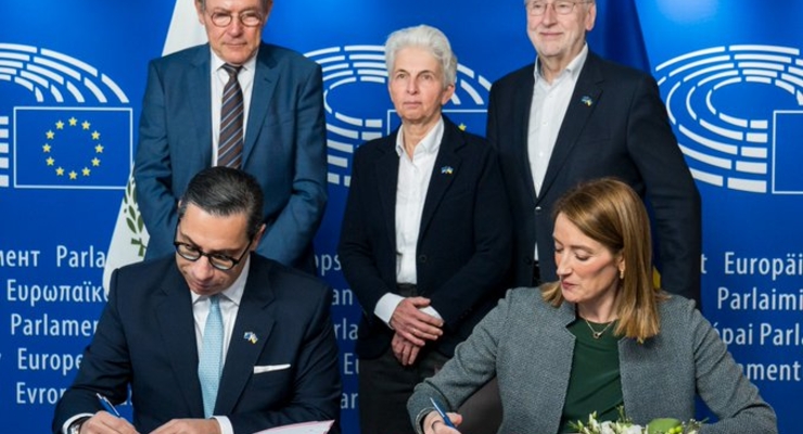 Президент Європарламенту Роберта Мецола сьогодні підписала відповідну угоду. фото / x.com/EP_President фото / x.com/EP_President