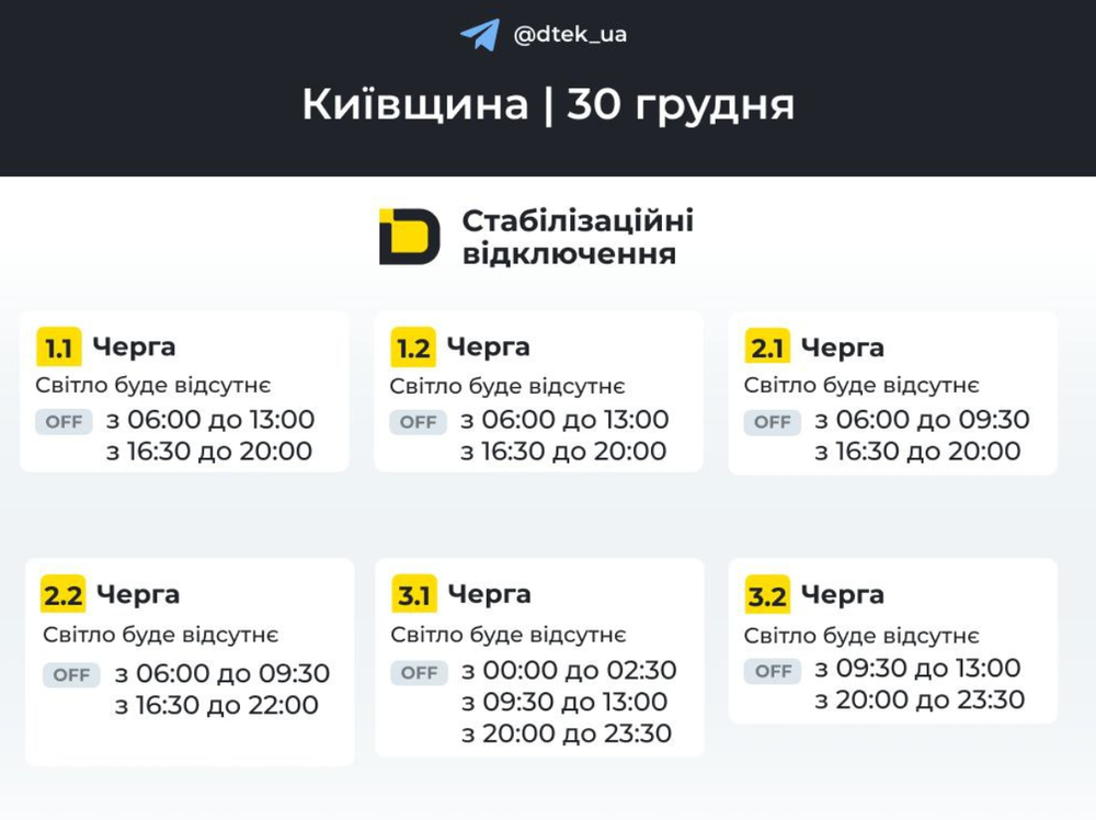 Також читайте: Доба тривалих відключень: коли в Києві вимикатимуть електрику 30 грудня