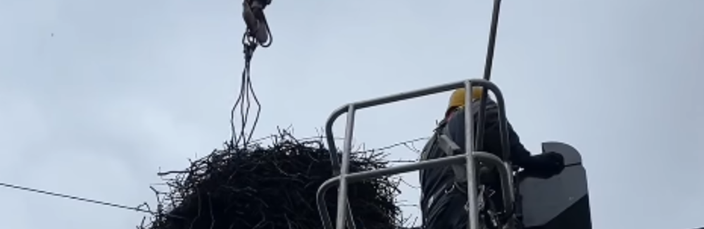 Бригада енергетиків прибула за вказаною адресою. Порятунок лелек відбувався за допомогою спецтехніки. Спочатку фахівці зняли старе гніздо.