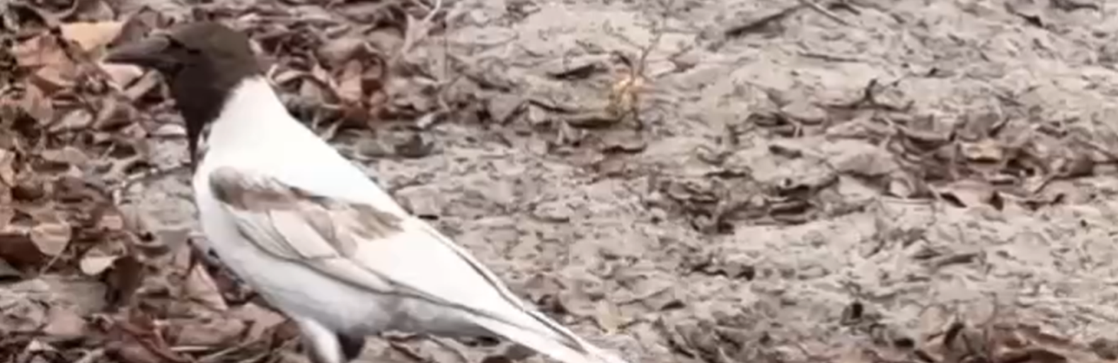 На Оболоні кияни помітили незвичну «білу ворону», яка різко виділялася серед звичайних чорних птахів. Орнітологи пояснюють: це не окремий вид, а звичайна чорна ворона (Corvus corone) із частковим альбінізмом або пієбальдизмом — явищем, коли пір’я частково знебарвлюється через порушення синтезу меланіну. Такі особини трапляються дуже рідко — приблизно один на кілька тисяч.