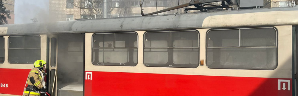 "Під час руху сталося загоряння трамваю", – повідомляє ДСНС Києва.