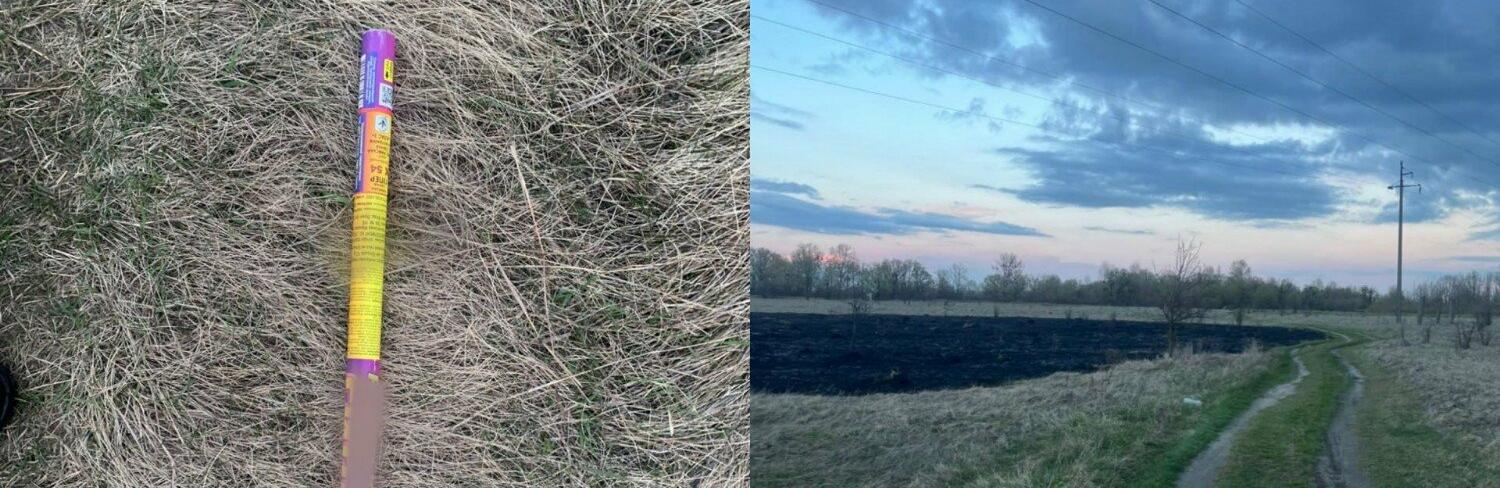 Інцидент стався у селищі Іванків і призвів до займання трави. Наразі триває досудове розслідування, повідомили в поліції Київщини.