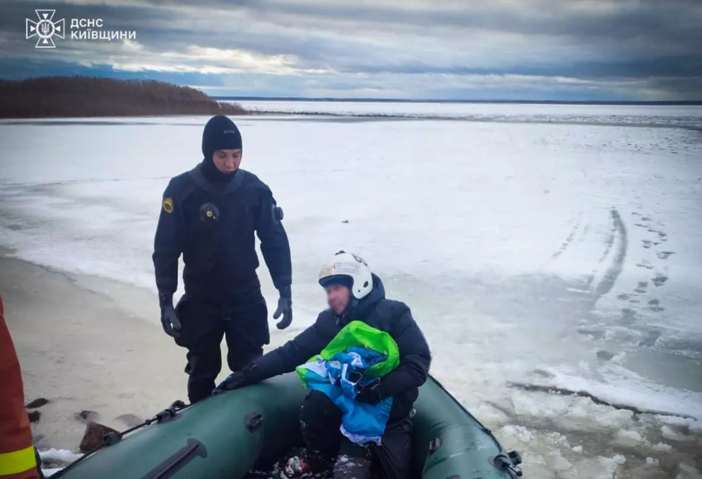 Лід тріснув – пролунали крики: на Київщині двоє рибалок опинились у небезпеці, – ФОТО