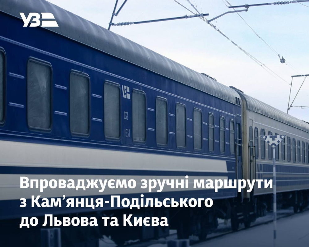 "Із 26 лютого забезпечимо зручну денну поїздку з Кам’янця-Подільського до Києва", – повідомляє Укрзалізниця у офіційному телеграм-каналі.