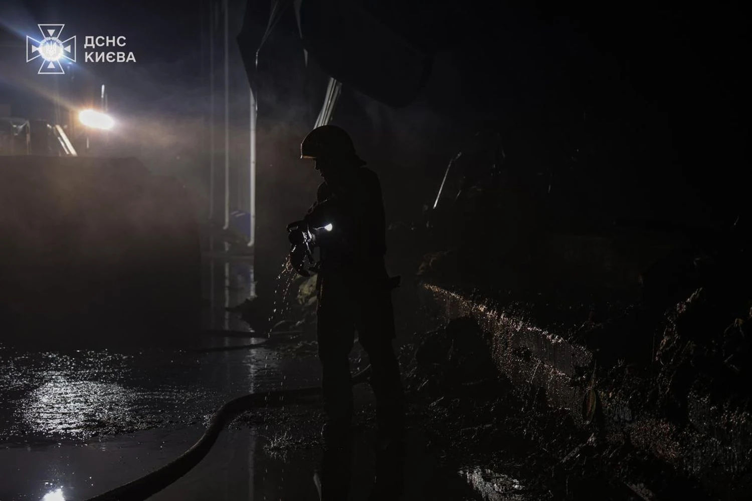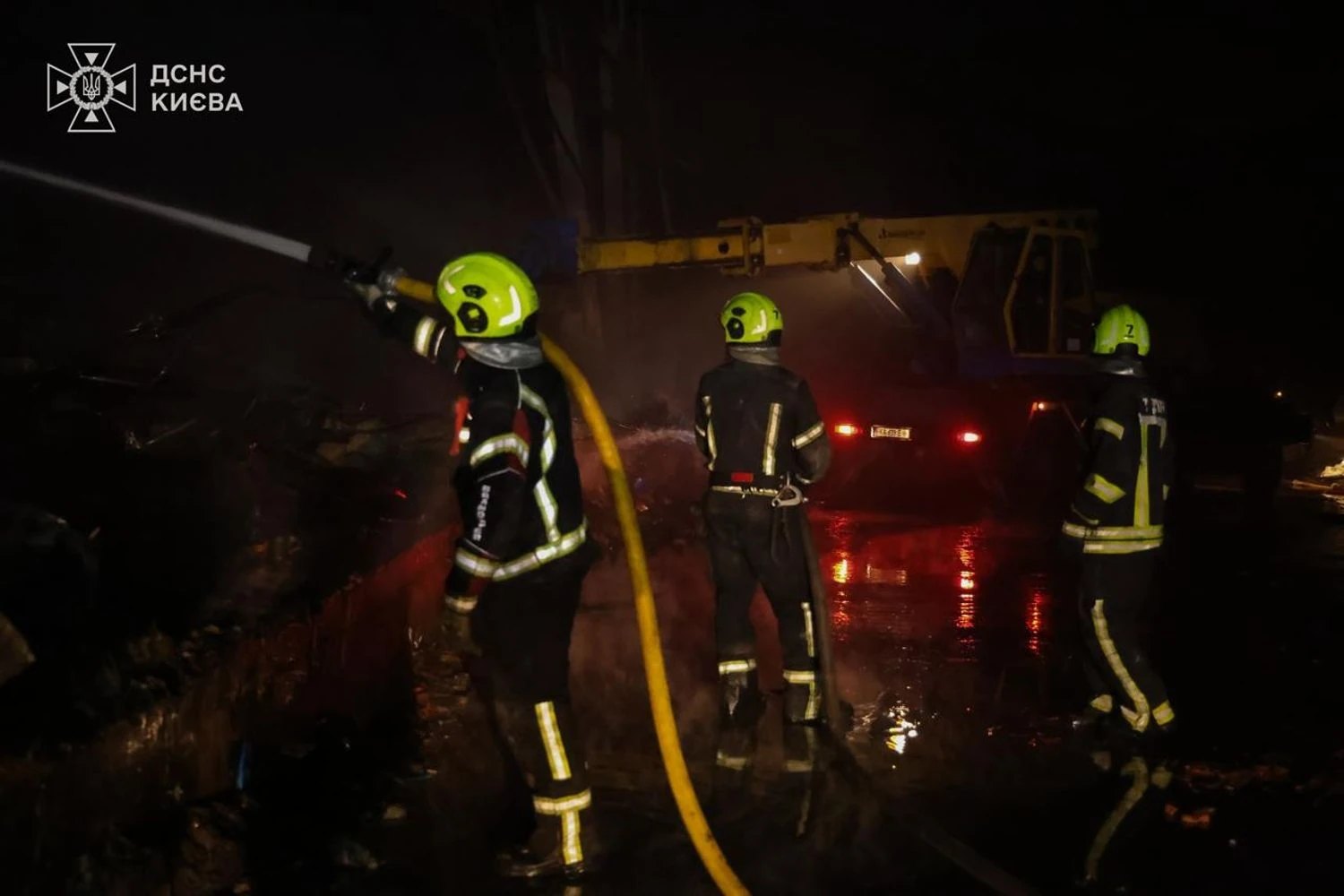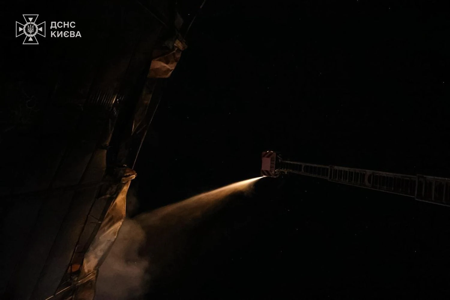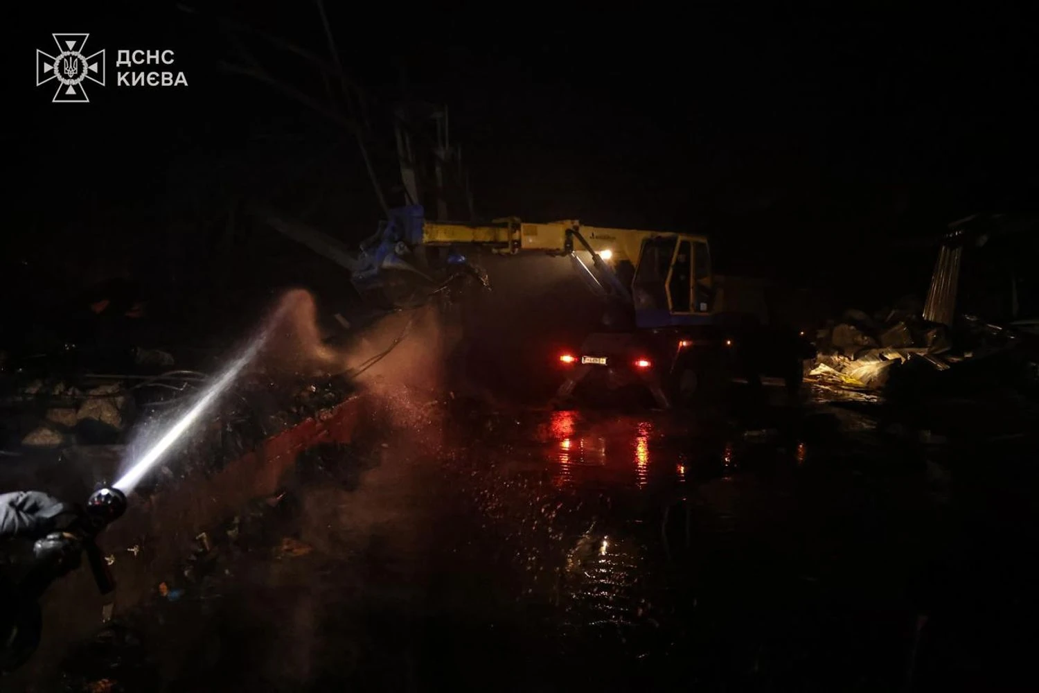 Пожежі в Деснянському та Дарницькому районах Києва, спричинені російським ударом, повністю ліквідовано. Рятувальники продовжують розбирати завали та проливати конструкції для запобігання повторному загорянню.