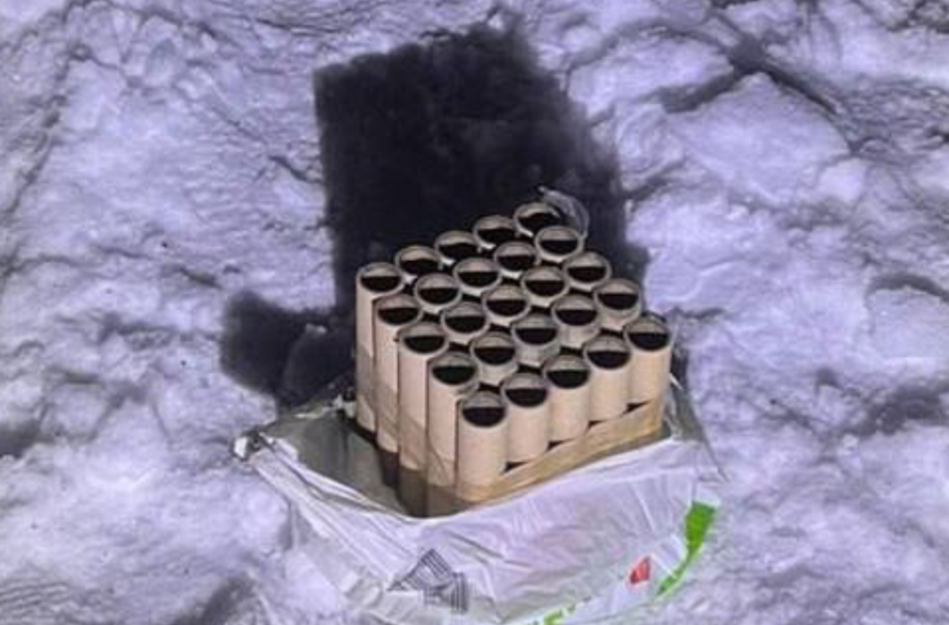 Прибувши на місце події та обстеживши територію, поліцейські вилучили доказ злочину. Вуличний хуліган використав для запуску салюту спеціальний піротехнічний засіб: