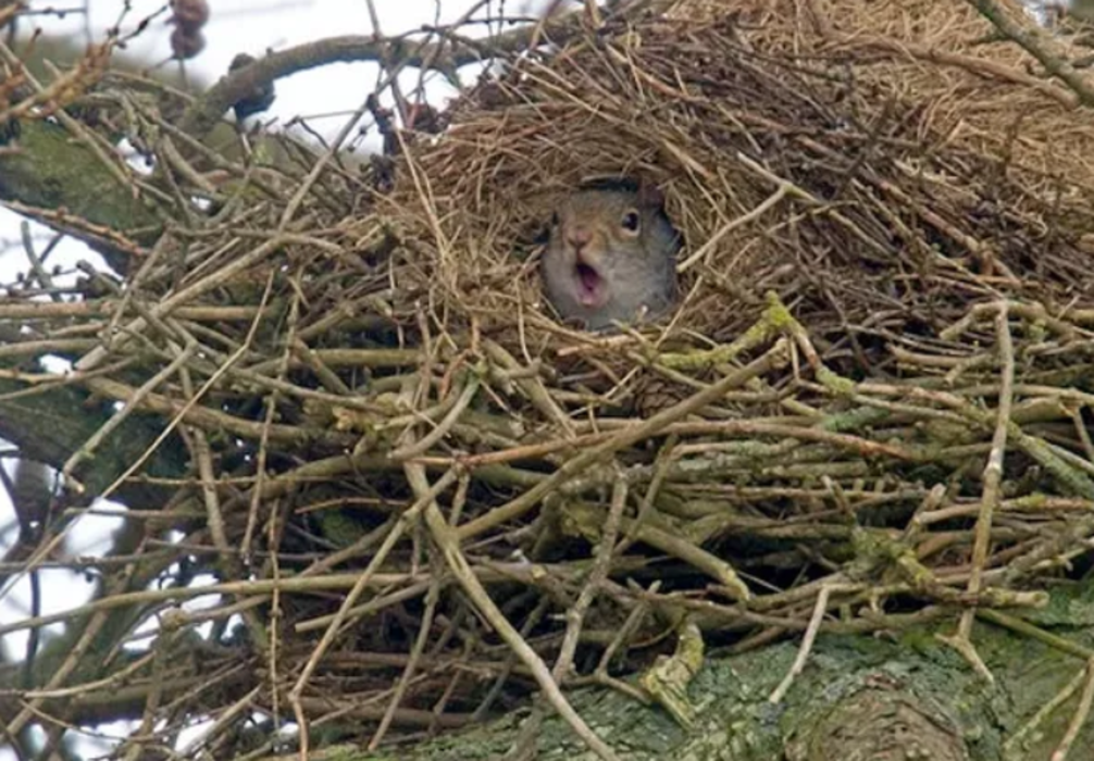 - Вивірки в’ють справжні кулясті гнізда – гайна? При умові, якщо не вдалось влаштуватись в дуплі старого дерева чи відшукати інше підходяще помешкання.