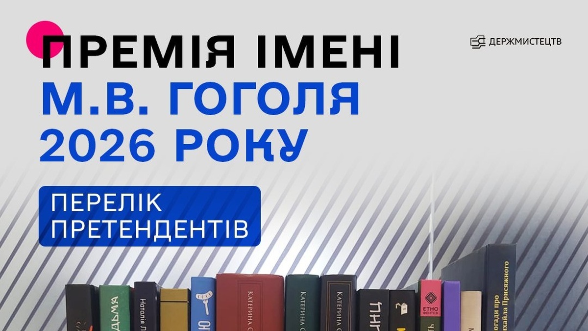 Державне агентство України з питань мистецтв та мистецької освіти (Держмистецтв) оприлюднило список із 20 претендентів на звання лавреата Премії ім. М.В. Гоголя у 2026 році, повідомляється на сайті відомства.