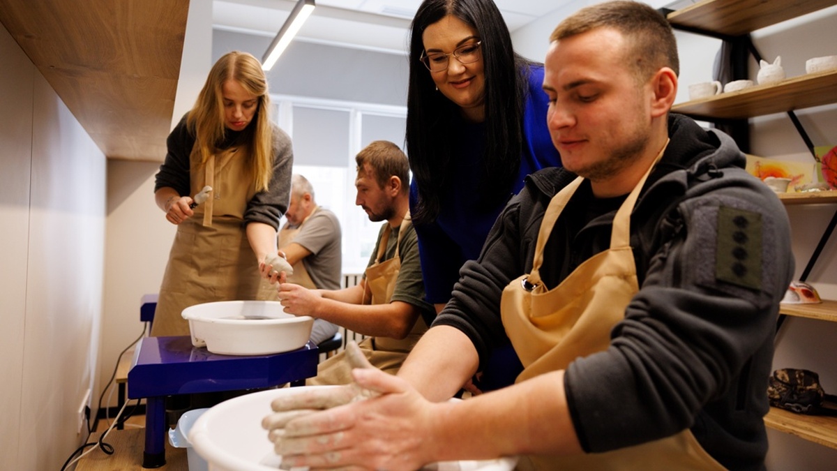Особливістю Хмельницького центру став простір вільного самовираження з гончарною та артмайстернею. Арттерапія є одним із дієвих інструментів для відновлення — вона допомагає людині безпечно виразити емоції, прожити травматичний досвід і відновити внутрішню рівновагу через творчий процес.