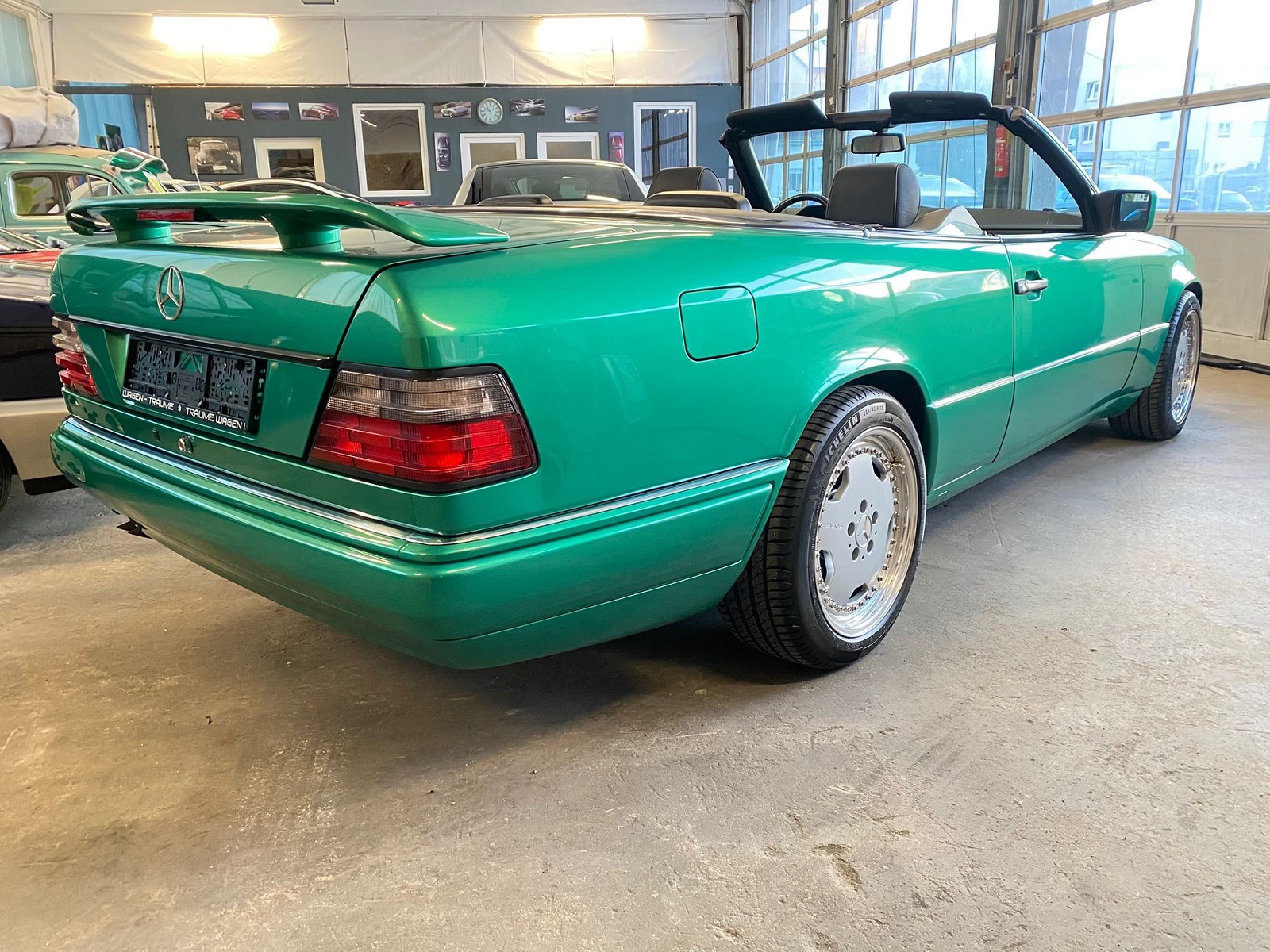 Кабріолет Mercedes W124, який тоді вже доживав останні роки на конвеєрі, пофарбували в особливий зелений колір Designo Grün 252, а салон оздобили чорною та зеленою шкірою, а також темним деревом. Крім того, звертають на себе увагу антикрило та 17-дюймові диски від AMG.