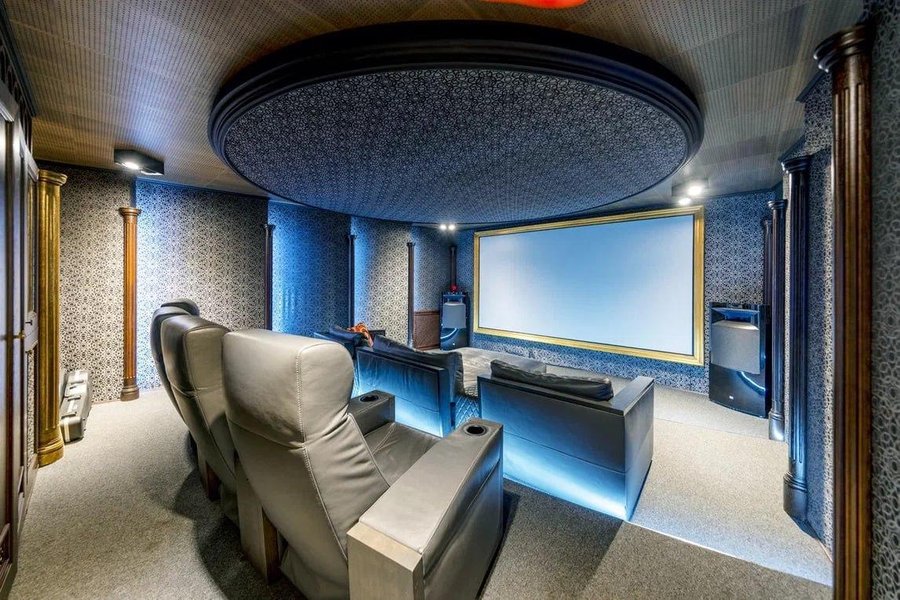 У маєтку є три спальні, робочий кабінет, домашній кінотеатр, винна кімната та гараж. На земельній ділянці також розміщені гостьовий будинок із лазнею та альтанка з барбекю-зоною.