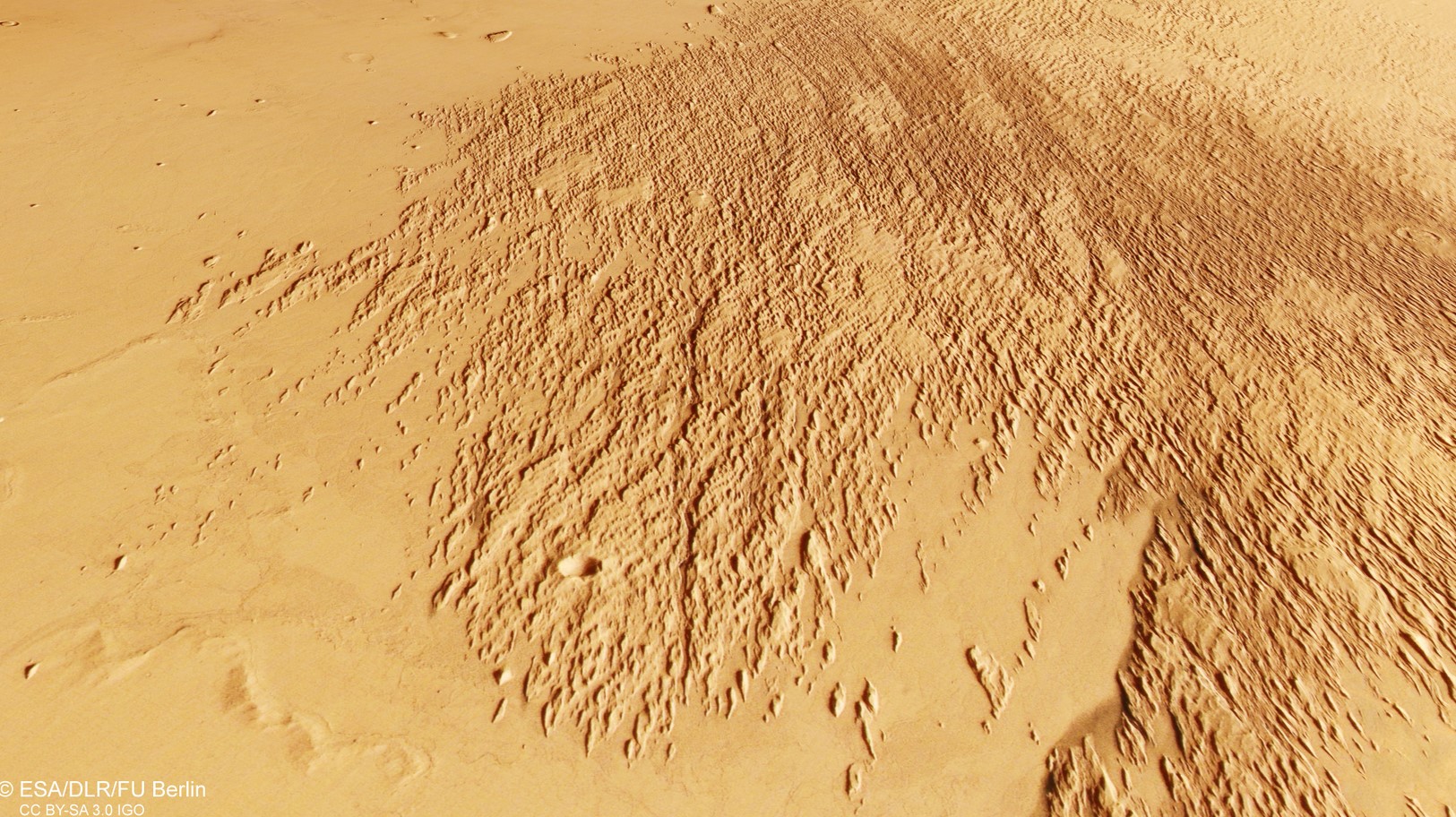 За словами вчених з ЄКА, ярданги, ймовірно, утворилися порівняно недавно, що вказує на довгу історію, де спочатку відбулося вулканічне оновлення поверхні, а потім вітрова ерозія, що змінила ландшафт Фото: ESA