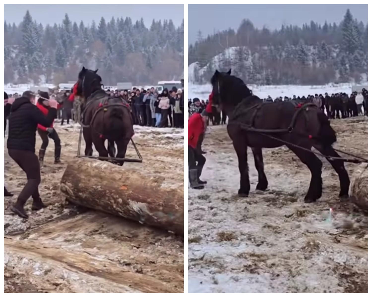 На Івано-Франківщині під час фестивалю "Коні Бойківщини" коней змушували тягати величезні колоди, що супроводжувалося сильними ударами палицями та батогами.