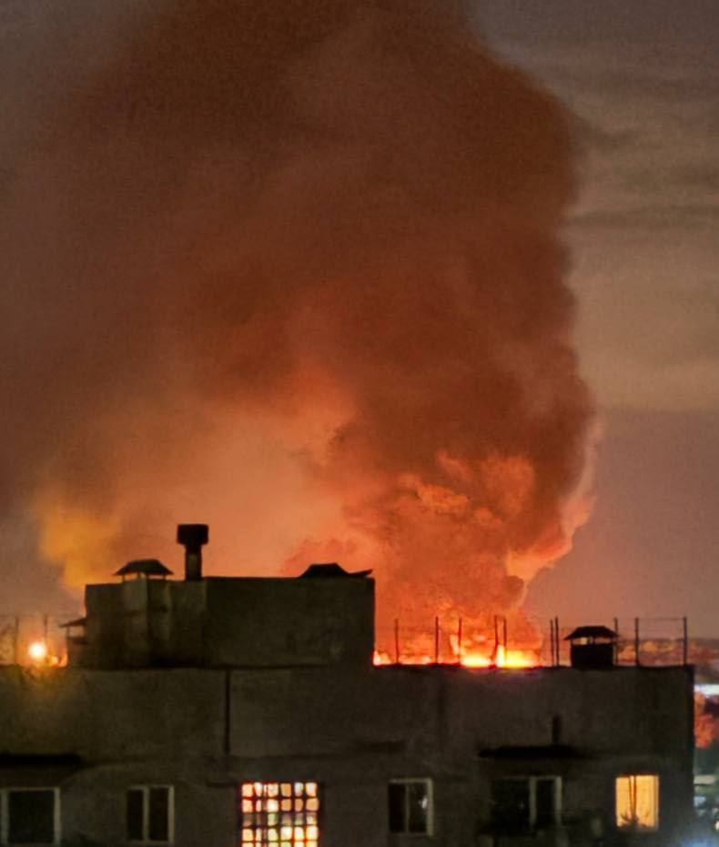У мережі також поширили кадри з місця подій. На відео чутно звуки вибухів та видно пожежу, що здійнялася внаслідок атаки.