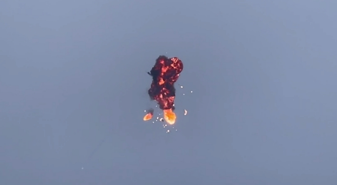 На відео чітко зафіксовано перехоплення російського безпілотника типу "Гербера" мобільною вогневою групою. Білоруські військові відкривали вогонь по цілі з кулеметного або зенітно-гарматного озброєння.