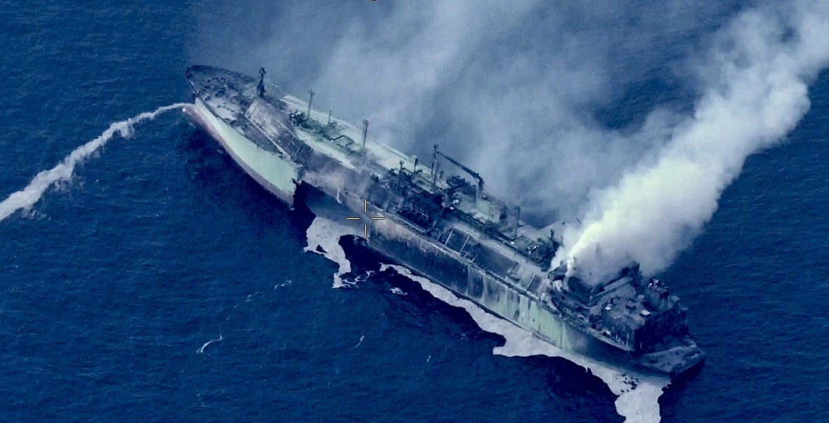 Після з'явилися супутникові фото танкера після вибуху, на яких явно було видно, що пошкодження дуже серйозні.