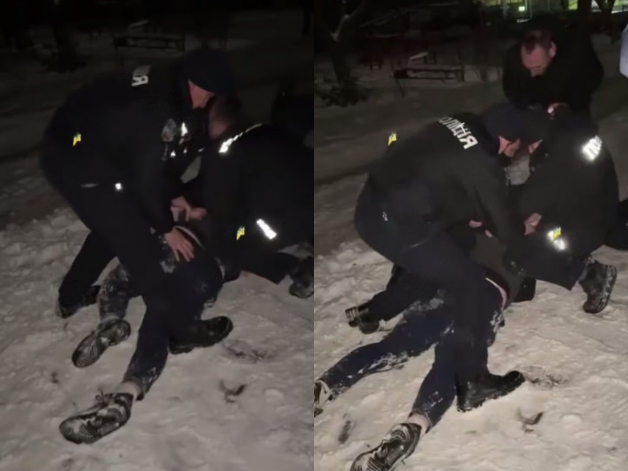 Правоохоронці визнали, що до нього застосували фізичну силу та кайдани, аби припинити порушення. Зазначається, що поліціянти діяли відповідно до статті 44 і статті 45 Закону України "Про Національну поліцію".