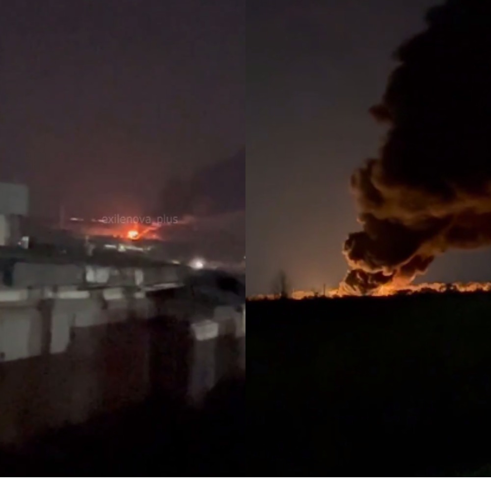За словами росіян, через атаку дрона відбулося займання резервуара з пально-мастильними матеріалами. Однак резервуари "не були повністю заповнені", через що площа займання нібито "мінімальна", запевняють росіяни.