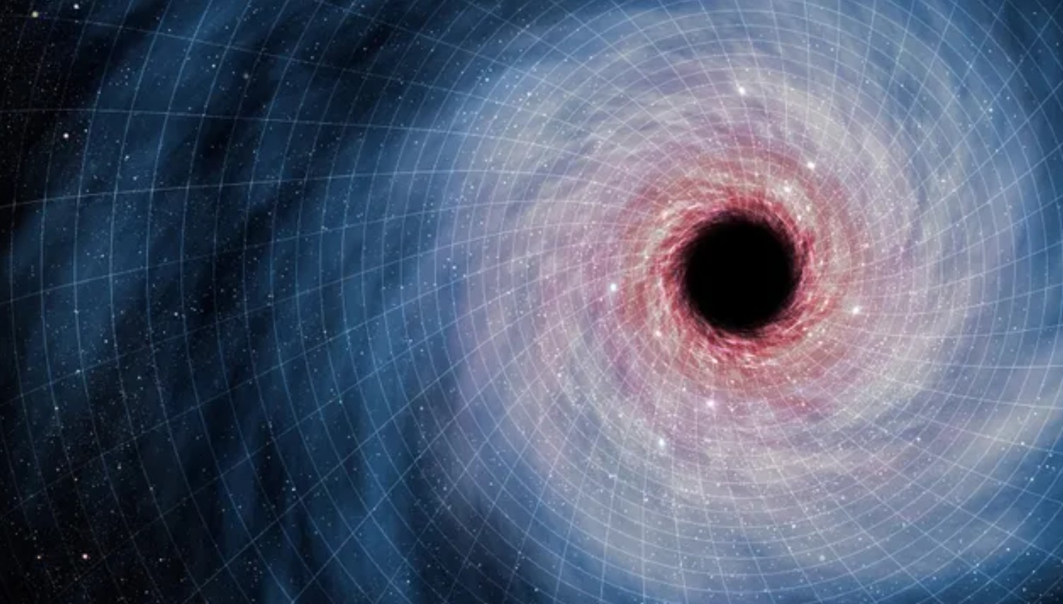 Художнє зображення простору-часу навколо чорної діри. Дослідження вказує на те, що три приховані виміри можуть запобігти повному зникненню чорних дір | Фото: Live Science
